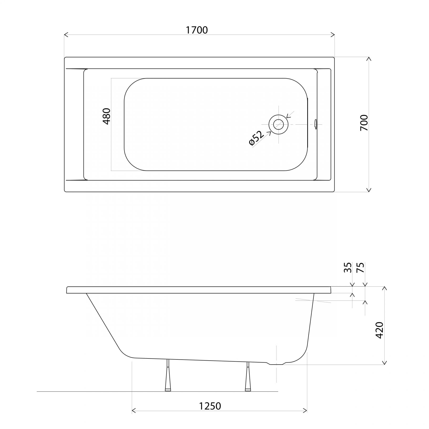Ванна акриловая KOLO SUPERO 170*70, прямоугольная, с ножками SN14 | 5343000