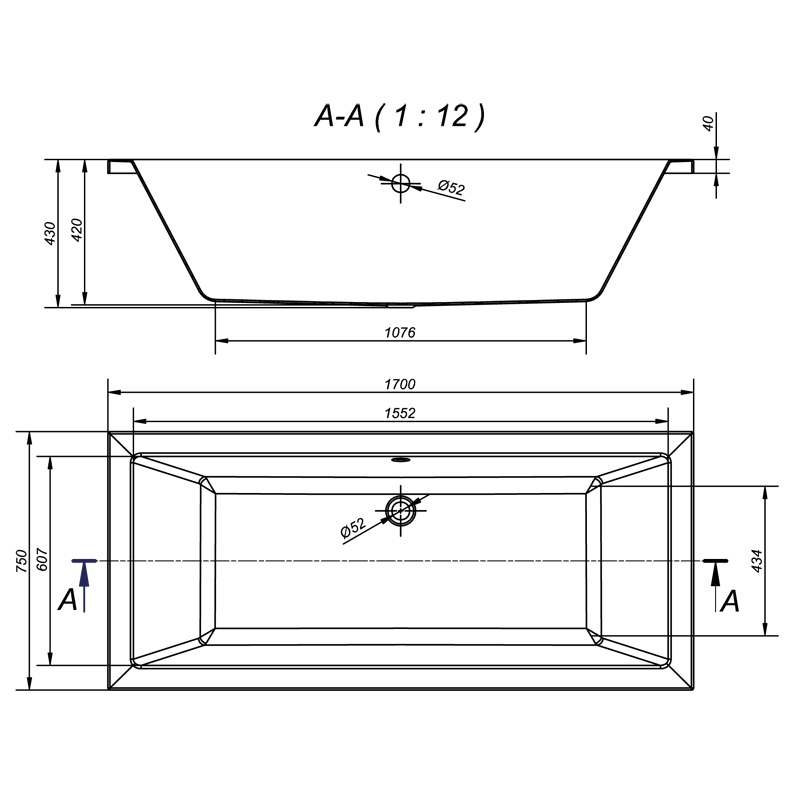 Ванна Cersanit INTRO 170х75+НОЖКИ | S301-068
