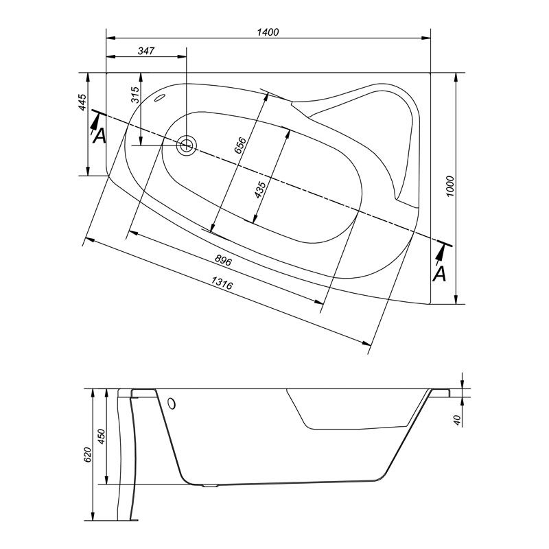 Ванна Cersanit SICILIA NEW 140х100 правая+НОЖКИ | S301-094