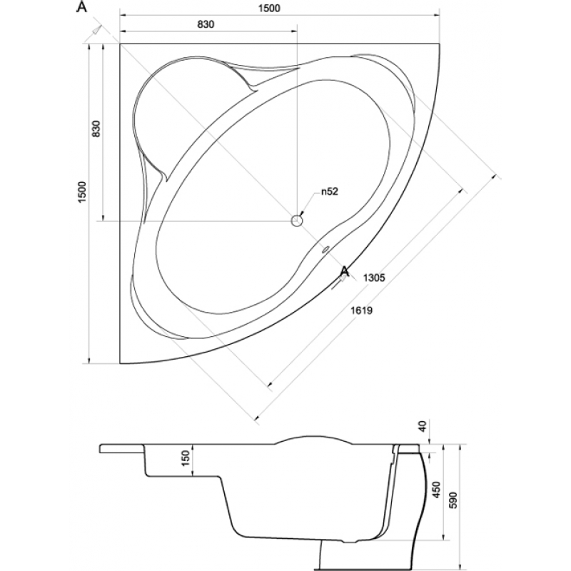 Ванна Cersanit VENUS 150х150+НОЖКИ | S301-013