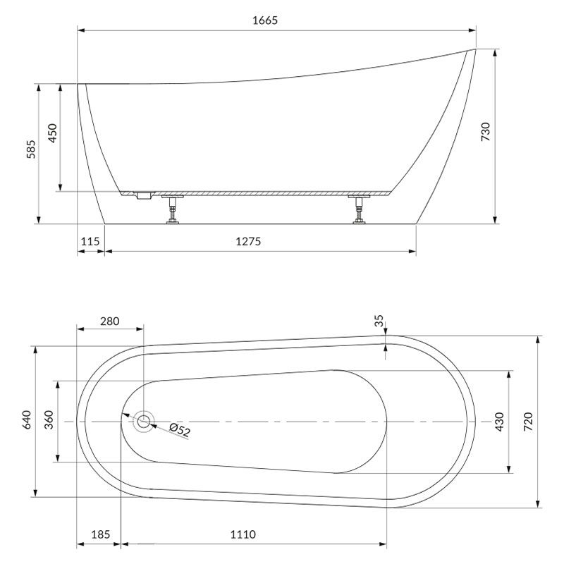 Ванна Cersanit ZEN 167х72 свободностоящая + ножки прикруч. | S301-302