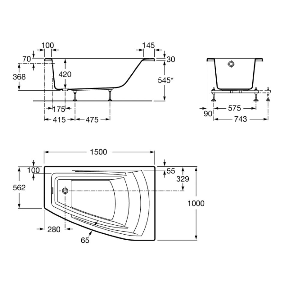 Ванна угловая Roca HALL 150*100см, правая, с подлокотниками, подголовником и ножками | A248165000
