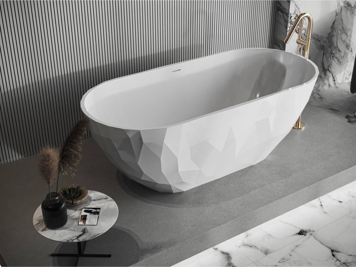 Отдельностоящая ванна SAPFIRE от производителя MIRAGGIO – эксклюзивная новинка 2022 года. Ванна с выразительными гранями на поверхности никого не оставит безразличным. Изысканная и изящная SAPFIRE станет драгоценным украшением вашей ванной комнаты. Если вы хотите быть в тренде, вы нашли то, что искали!