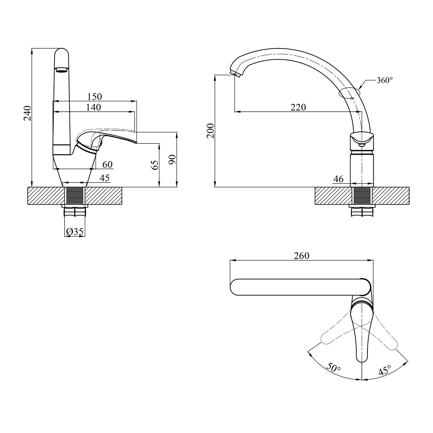 Высота смесителя, мм:200