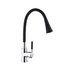 Смеситель для кухни Kroner KRM Kuche – C132BLK – это стильный и функциональный вариант для вашей кухни. Изготовленный из высококачественного силумина с силиконовым изливом, он сочетает в себе прочность и удобство в эксплуатации. Однорычажное управление позволяет легко регулировать температуру и поток воды.
