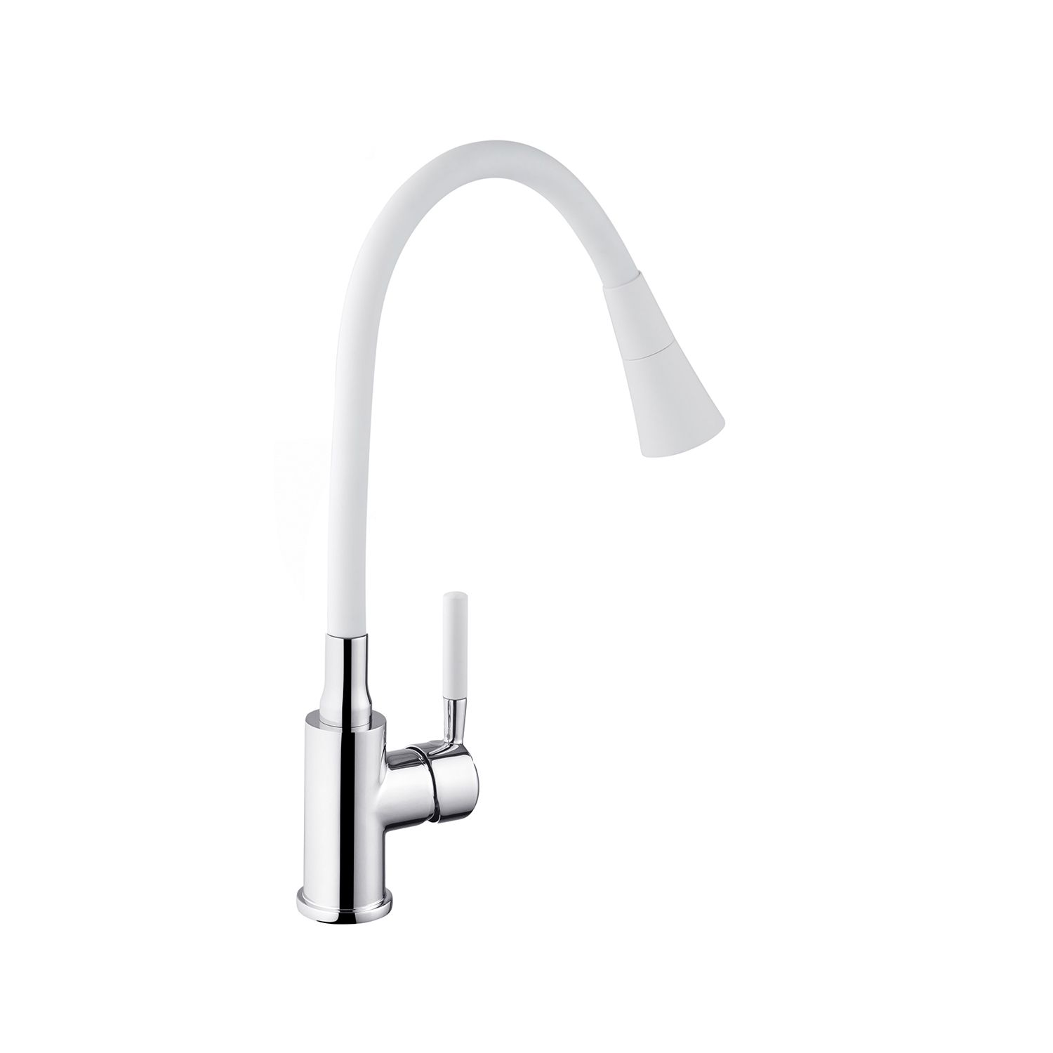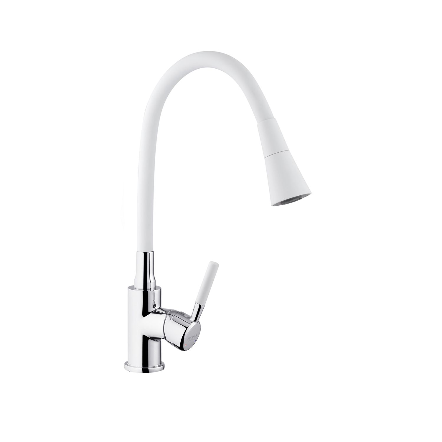 Смеситель для кухни Kroner KRM Kuche – C132WHI – это стильный и функциональный вариант для вашей кухни. Изготовлен из высококачественного силумина с силиконовым изливом, он совмещает прочность и удобство в эксплуатации. Однорычажное управление позволяет легко регулировать температуру и поток воды.
