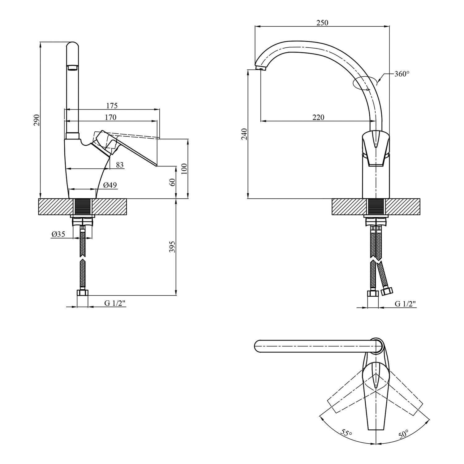 Диаметр подключения шлангов:1/2"