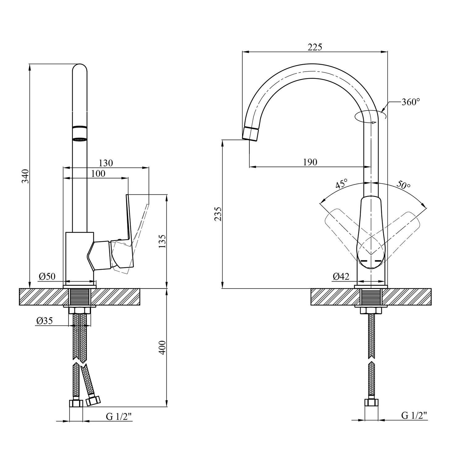 Диаметр подключения шлангов:1/2"