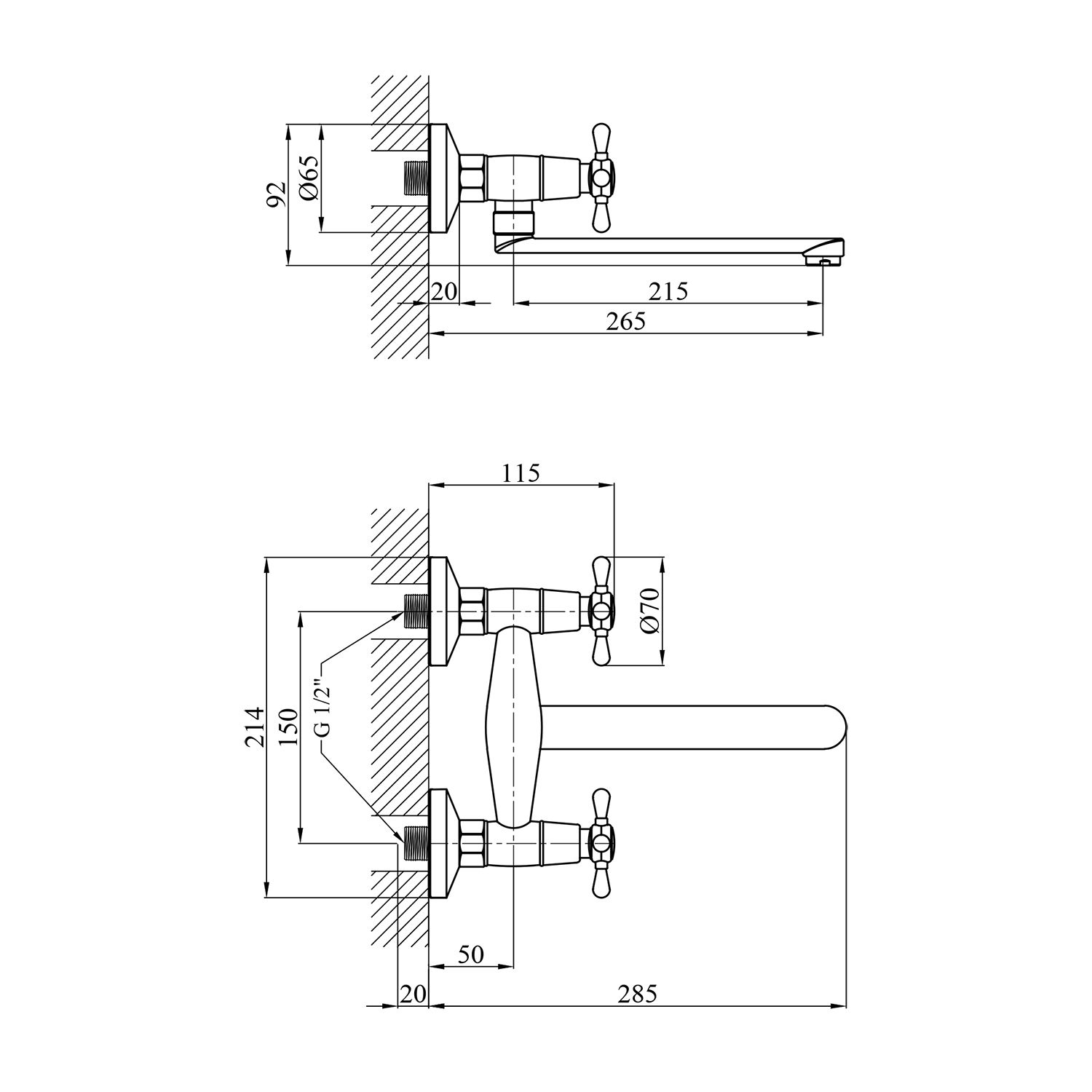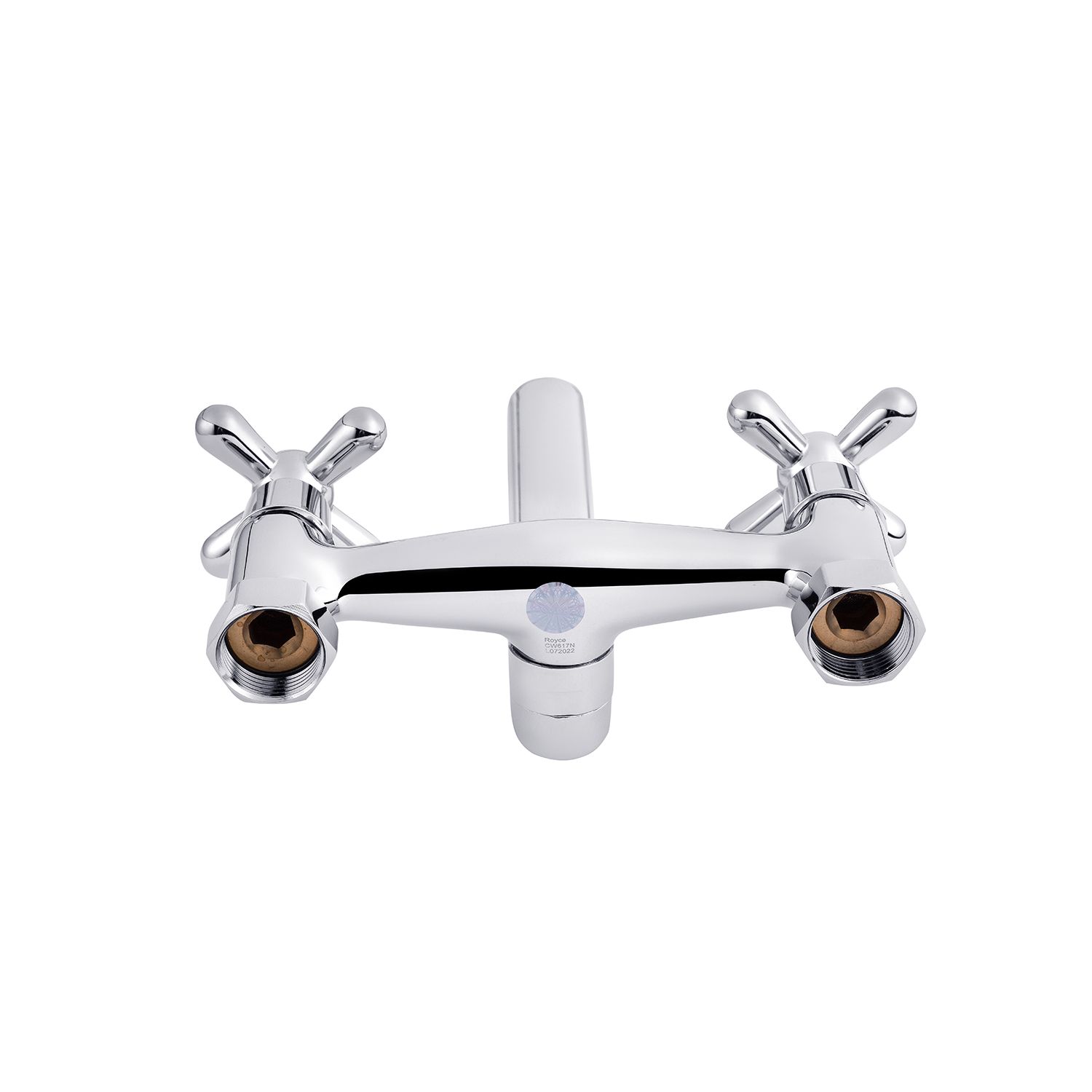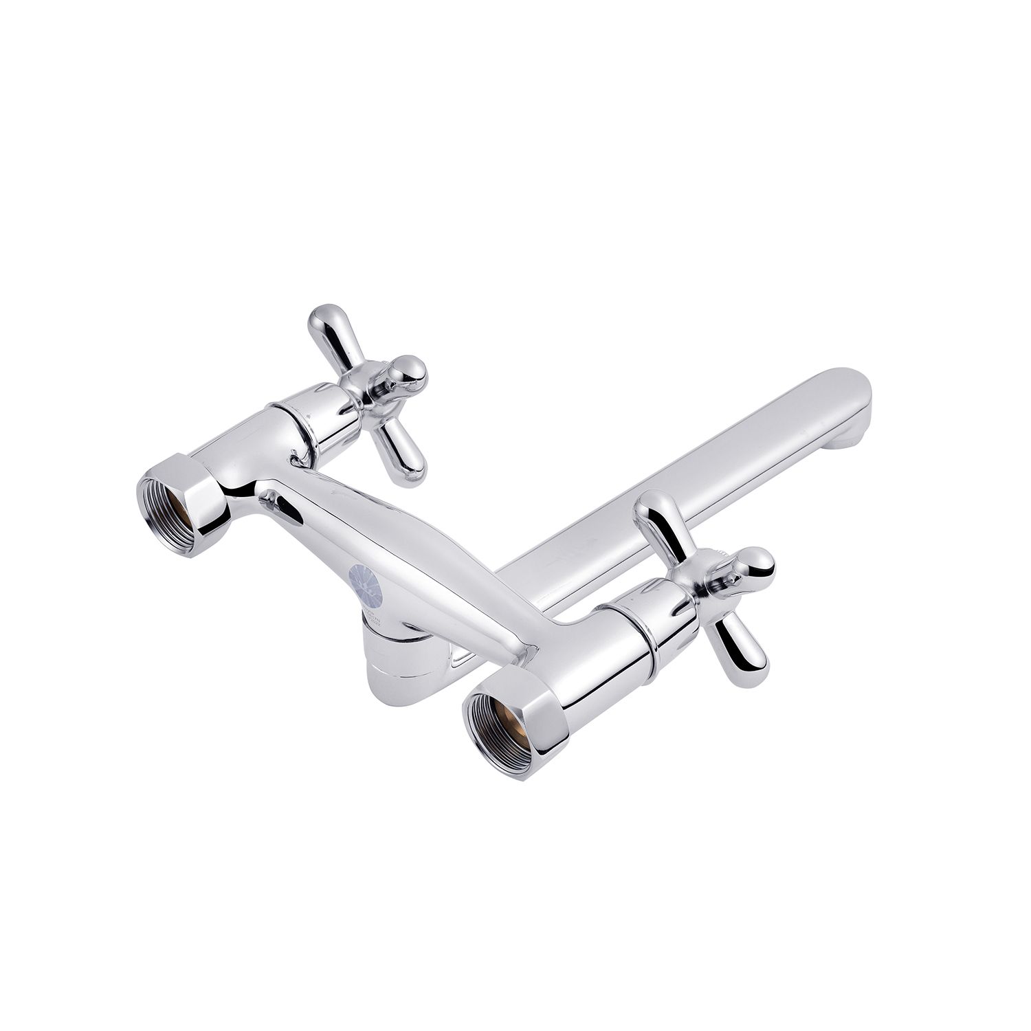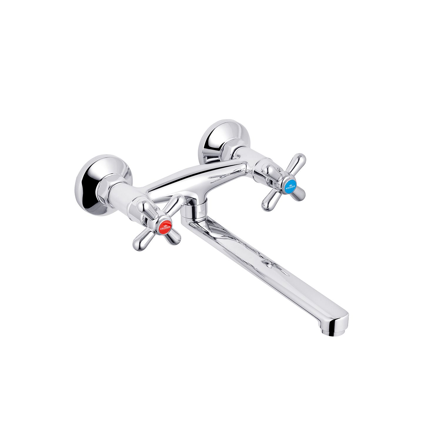 Смеситель для кухни Kroner KRP Royce – C040 настенная модель, отличающаяся современным дизайном и надежностью. Латунное устройство с глянцевой хромированной поверхностью эстетично и долговечно. Выполнен в классическом стиле с вентильными ручками для переключения потока холодной и горячей воды. Монтаж осуществляется с помощью эксцентриков, обеспечивающих максимальное прилегание к трубам и снижая уровень шума.