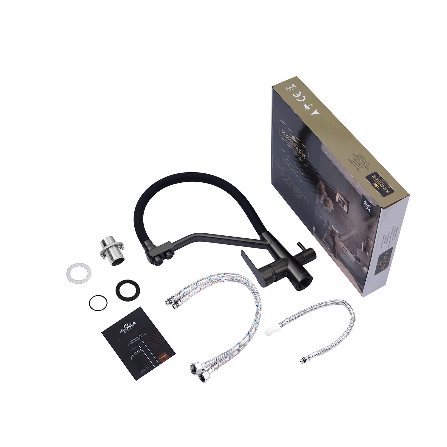 Смеситель для кухни с подключением к фильтру Kroner KRP Edelstahl Klassisch - PVD03817BLK | CV031898