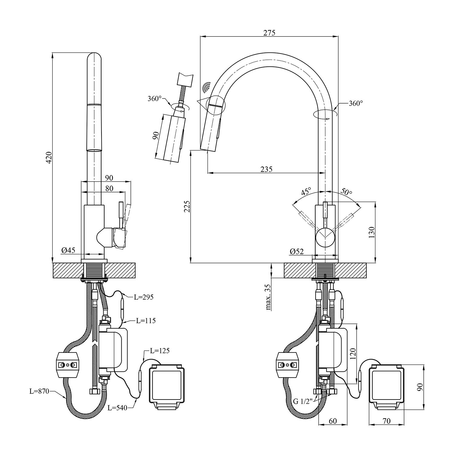 Тип излива:Поворотный , Выдвижной