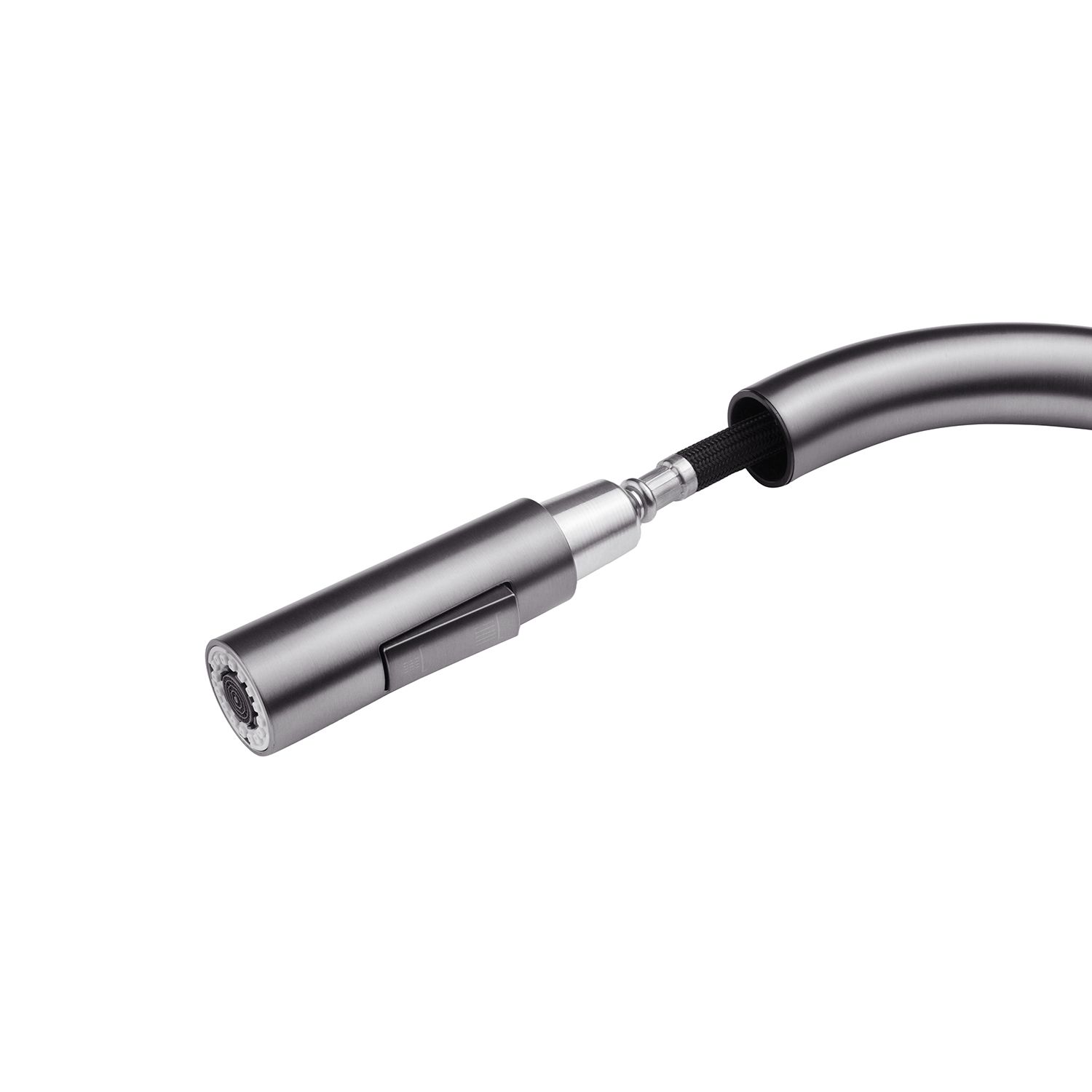 Смеситель обладает лаконичным дизайном и высокой функциональностью. Выдвижная воронка имеет шарнир, обеспечивающий вращение на 360 градусов. Два режима распыления – от потоковой струи без брызг до мощной струи душа – позволяют эффективно выполнять различные задачи, такие как ополаскивание посуды или удаление загрязнений.
