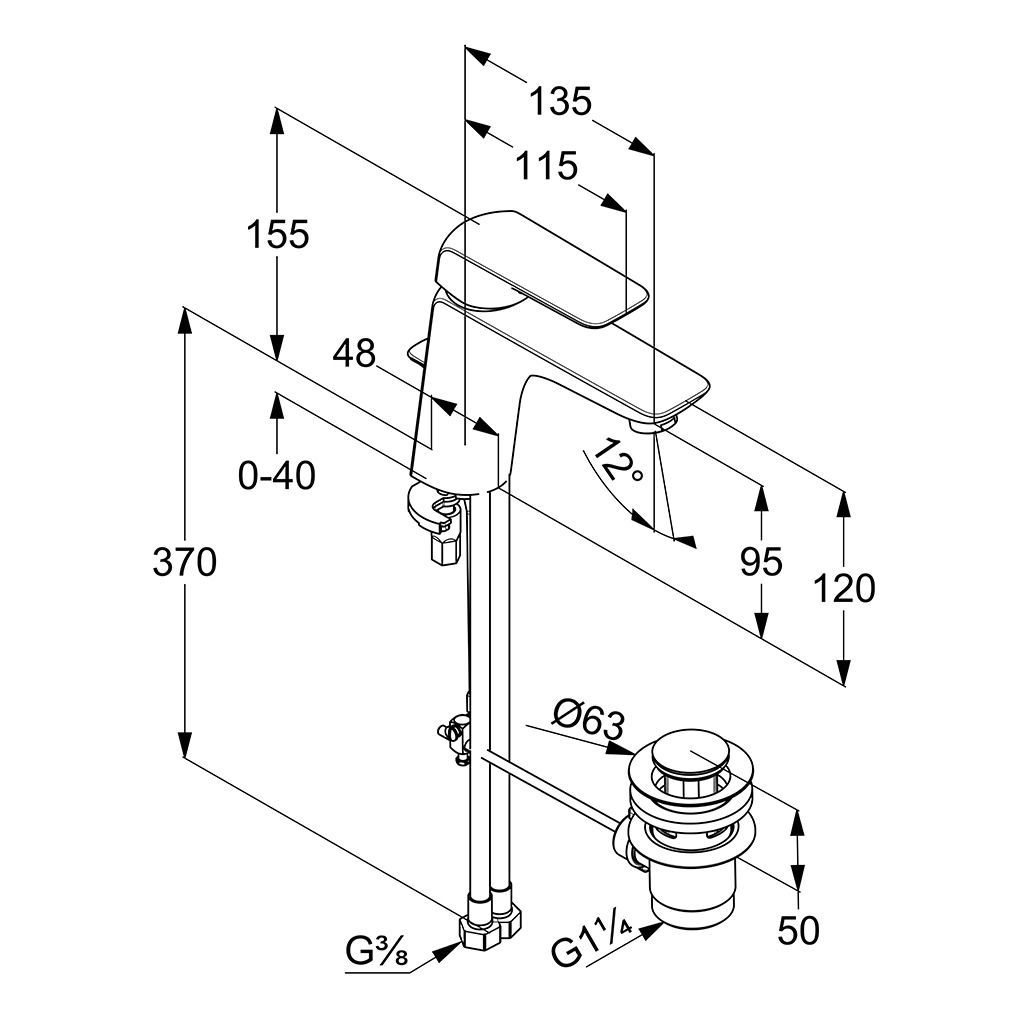 Высота излива, мм:95