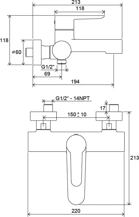 Смеситель для ванны PU 022.00 Puri X070115 RAVAK | X070115