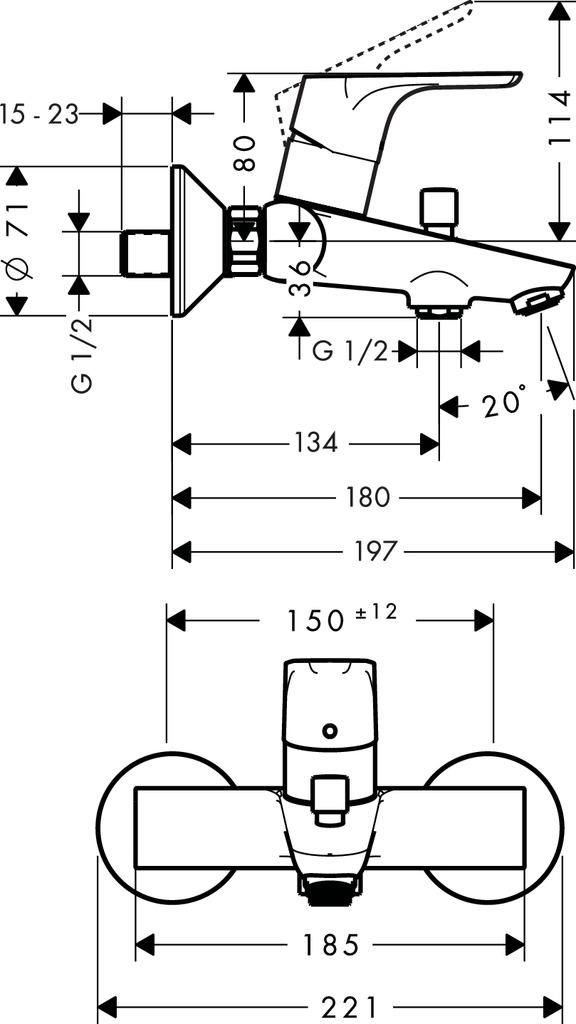 Focus Смеситель для ванны, однорычажный Выступ 172-179,5 mm, тип соединения: S - соединение, обычная струя, расход воды: 22 л/мин, подходит для работы с проточным водонагревателем